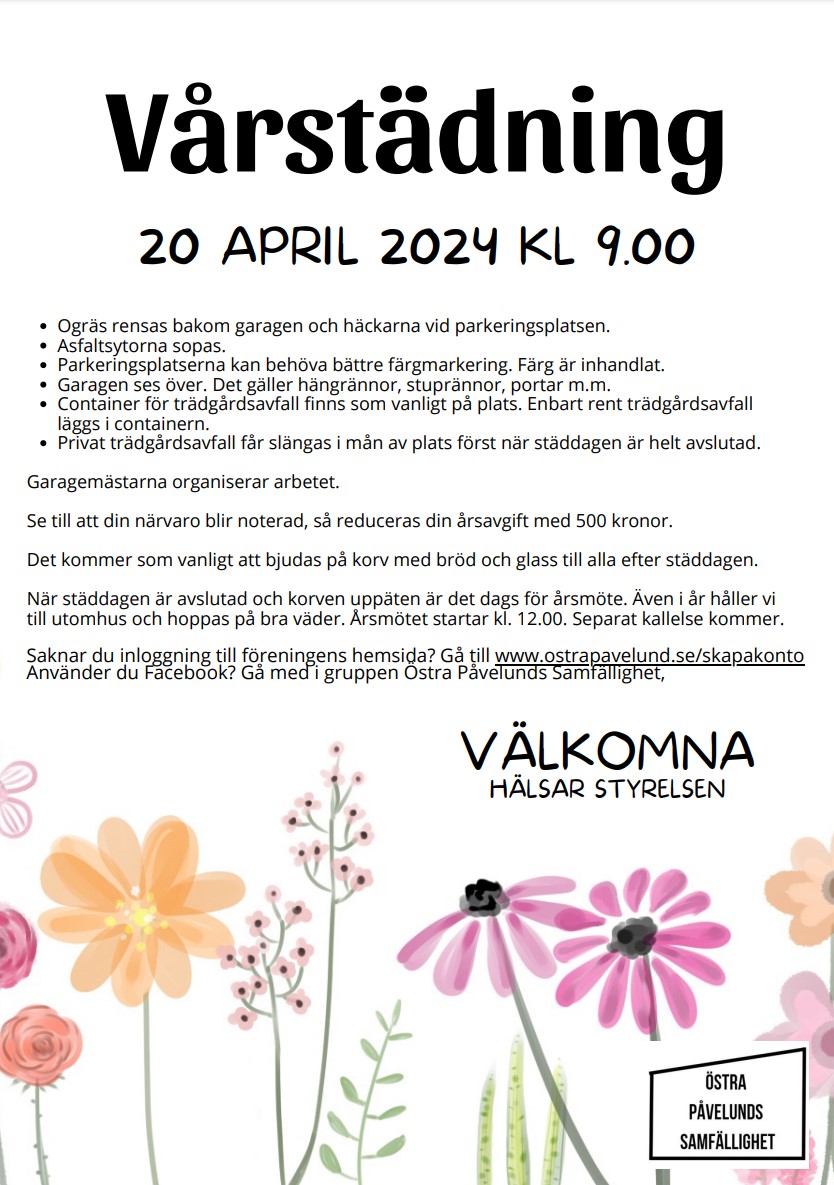 Nästkommande vecka är det dax för häckklippning igen så vi önskar att de som parkerar sina bilar ställer sig en dryga meter från häcken så de kan komma åt. Tackar!