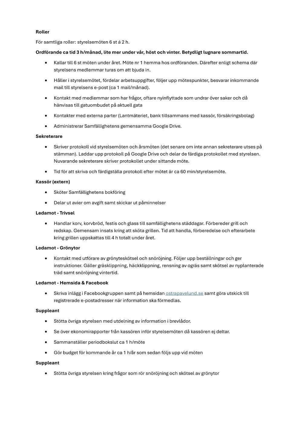 Det börjar närma sig årsmöte i Östra Påvelunds samfällighetsförening och vi i valberedningen är igång med arbetet inför årsmötet. Vår nuvarande ordförande Anna har meddelat att hon lämnar styrelsen till årsmötet och vi letar nu efter kandidat till ny ordförande, samt ytterligare minst en kandidat till styrelsen.